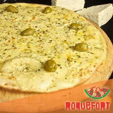 ROQUEFORT: salsa de tomates, mozzarella, queso roquefort, oregano, aceitunas verdes