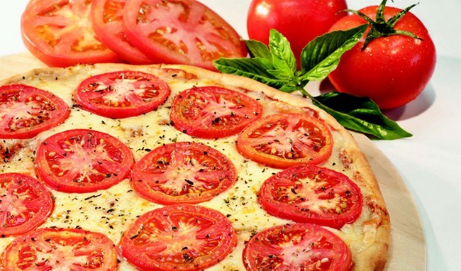 NAPOLITANA: salsa de tomate, mozzarella, tomates en rodajas, ajo perejil, oregano y aceitunas verdes