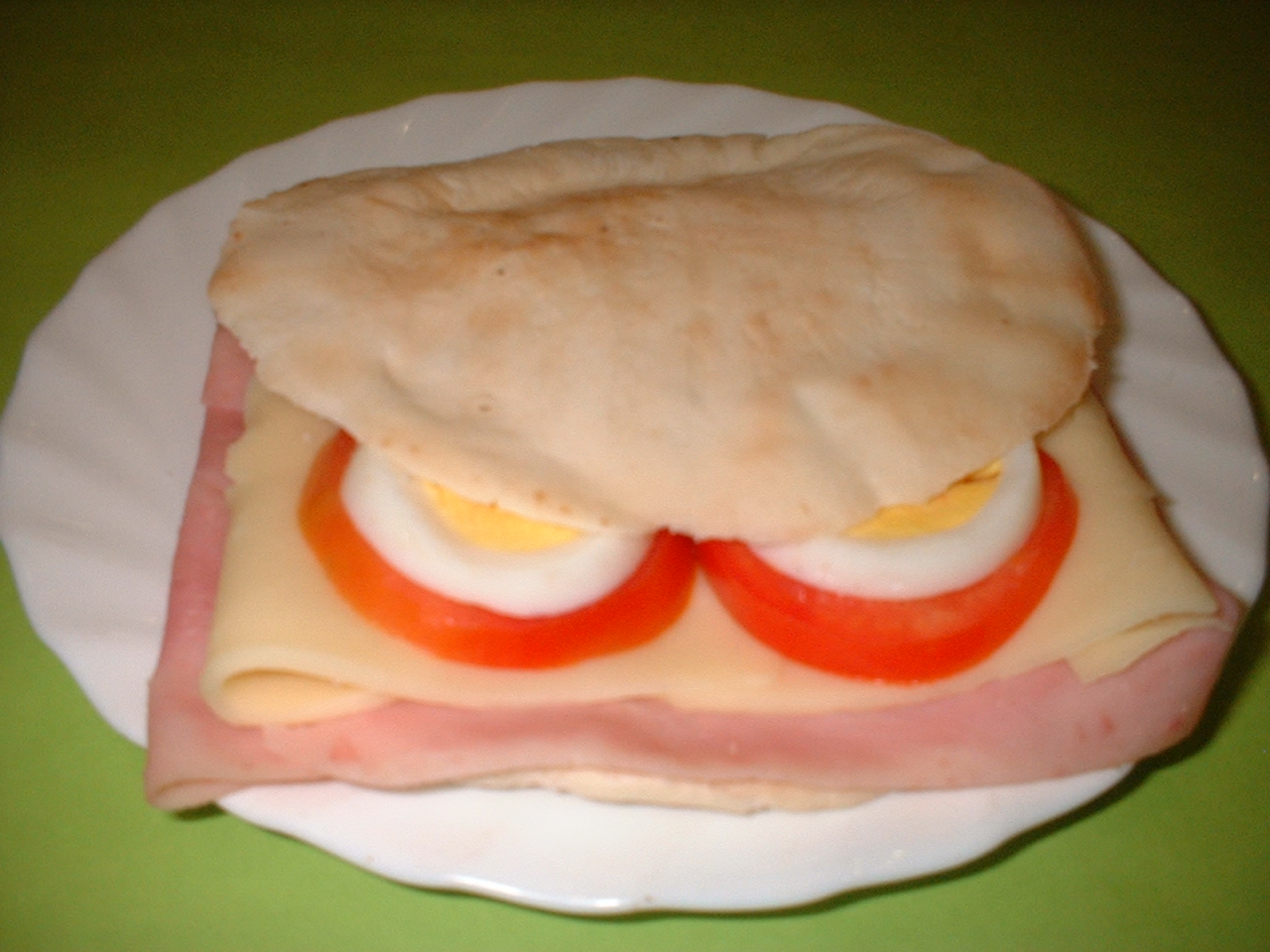 Sandwich de pan Arabe Casero con jamon queso, lechuga tomate y huevo duro